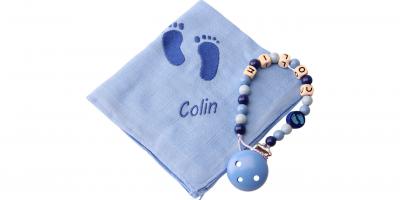 Grâce à ses nombreuses couleurs et au nom brodé (max: 10 symboles) votre doudou et votre attache-tétine seront unique!